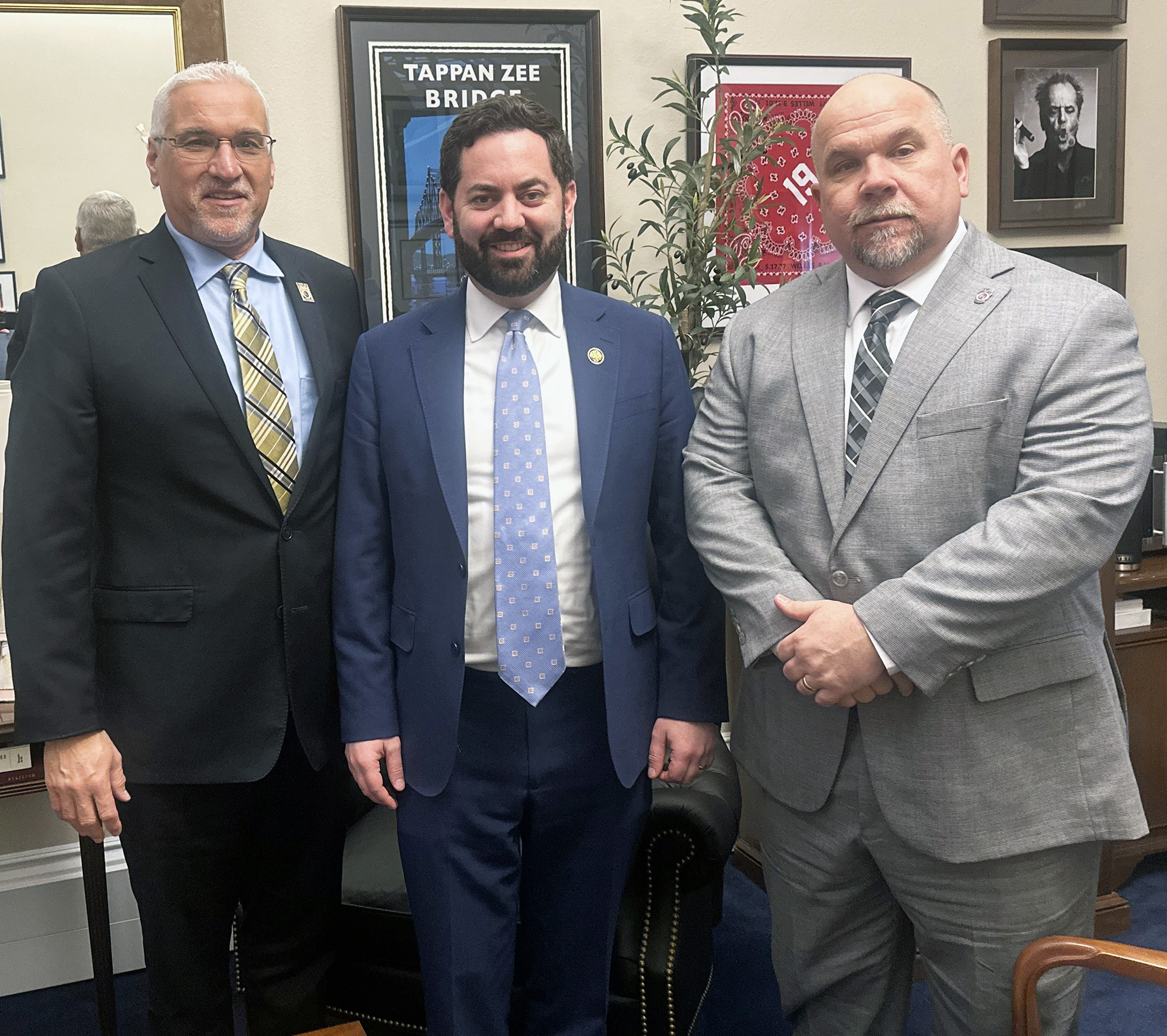 BLET National President Mark Wallace (left) and BLET First Vice President Gary Best (right) met recently with Congressman Mike Lawler (R-New York) to discuss rail legislation vital to our members.