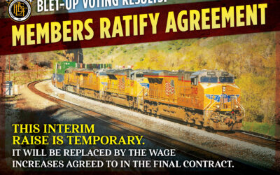 BLET members today ratified an agreement with the Union Pacific Railroad that will provide a one-time general wage increase of 3% to approximately 6,000 BLET members employed at UP. The interim raise will go into effect on September 1, 2025. The interim raise is temporary and will be replaced by the wage increases agreed to in the final contract settlement. The BLET’s Union Pacific General Chairmen currently leading the ongoing on-property negotiations are: Kyle Bagby, UP-Central Region; Chad Lambert, UP-Eastern District; Dick Crow, UP-Northern Region; Scott Alexander, UP-Southern Region; Brian Carr, UP-Western Lines; and Will Wallace, UP-Western Region. National President Mark Wallace, along with Wage Team Members First Vice-President Gary Best and UP National Vice President Kevin Sexton, are representing members in health and welfare matters and are actively supporting the General Chairmen throughout this round of negotiations.