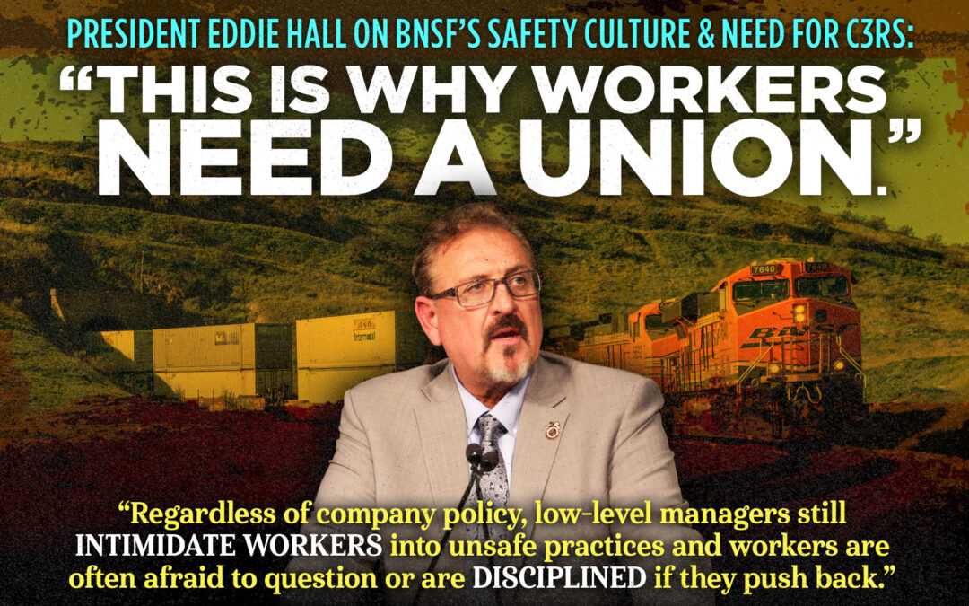“This is why workers need a union,” BLET National President Eddie Hall said. “Regardless of company policy, low-level managers still intimidate workers into unsafe practices and workers are often afraid to question or are disciplined if they push back. I urge BNSF’s executive leadership to make a meaningful commitment to safety by joining the C3RS program.”