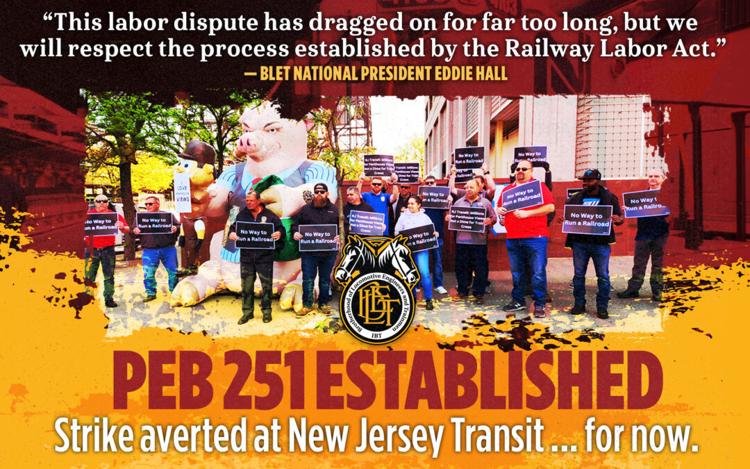 “This labor dispute has dragged on for far too long, but we will respect the process established by the Railway Labor Act,” BLET National President Eddie Hall said. “NJT has nearly a half-billion dollars for lavish new office space, they recently raised fares by 15 percent. Meanwhile, they haven’t offered their engineers competitive wages with other passenger railroads. It’s time for NJT to make a fair offer and settle this dispute voluntarily. Otherwise, our members will be walking picket lines rather than operating trains.”