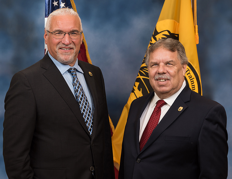 From left: BLET President Mark Wallace congratulated Vice President Pete Semenek on his upcoming retirement during the December BLET Advisory Board meeting. Photo by Bonnie Brihan