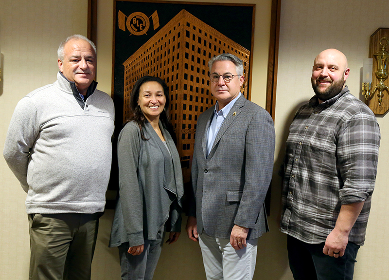 Meeting at BLET National Division headquarters, from left: Vice President Randy Fannon, new head of the Arbitration Department; Denise Doody, Arbitration Department Manager; David Estes, National Secretary-Treasurer; and Dan Lucansky, Director of Arbitration.