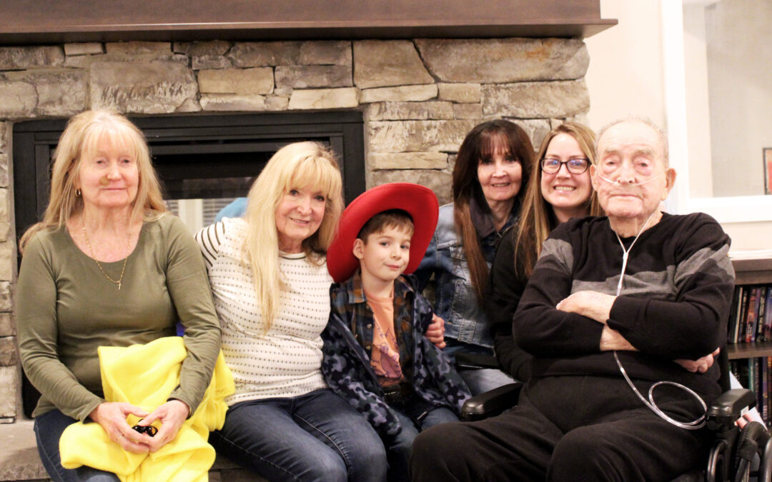 From left: daughter Kathy, daughter Betty, Jack’s great grandson, daughter Debbie, Jack’s granddaughter, and Jack McDermott. Photo courtesy: Tayler S. Calder/Idaho State Journal